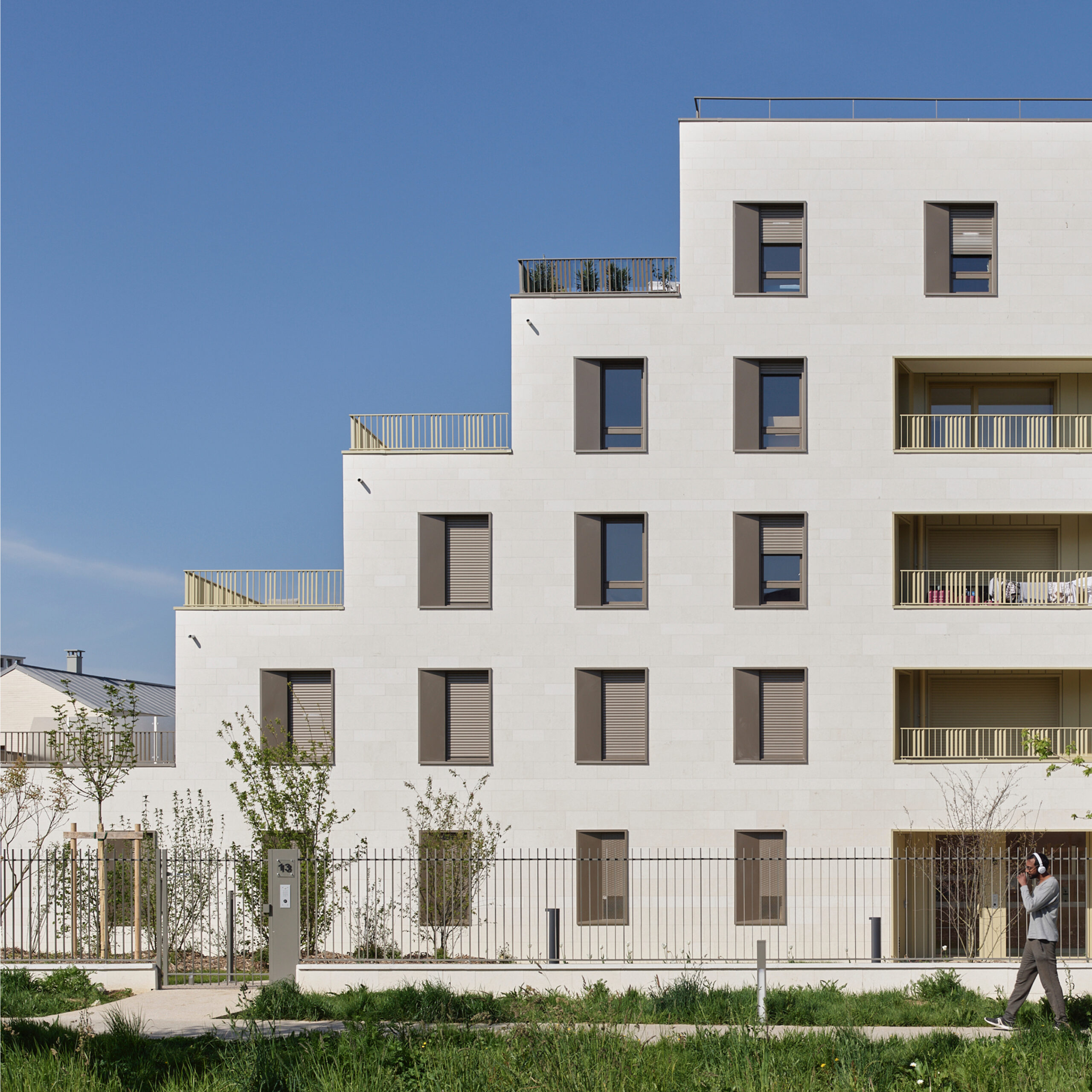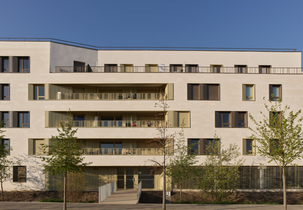 Les maisons perchées : l’ensemble intermédiaire associe 6 duplex, imbriqués 2 par 2. L’organisation du plan sur deux niveaux, la taille généreuse des espaces extérieurs et l’accès propre à chaque logement, sont autant de qualités qui apparentent ces appartements à des maisons individuelles