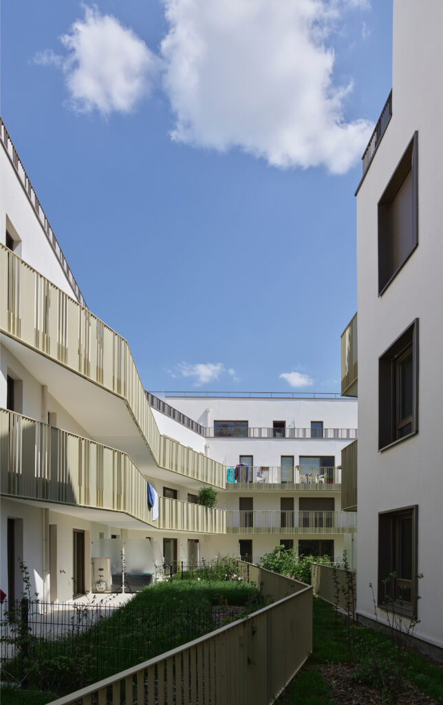 Le projet, s’inspirant de la géométrie irrégulière de la parcelle, est aussi une variation sur le thème du biais : évasement des failles, ligne brisée des balcons, pente des toits, ébrasement des baies et des loggias, orientation oblique des barreaudages. Il en résulte un projet fragmenté sans être éparpillé, aux limites claires mais non hermétiques, un projet dense sans être étouffant, mouvant mais solidement ancré, un projet aux horizons multiples.