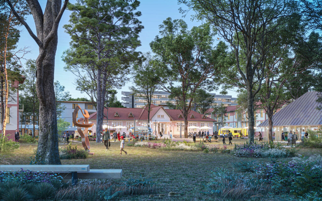 - Un respect du cadre exceptionnel dans lequel ce quartier s’inscrit, celui de la forêt domaniale de Sénart, en faisant entrer la forêt au coeur d’un projet imaginé dans un objectif ZAN et bas carbone.