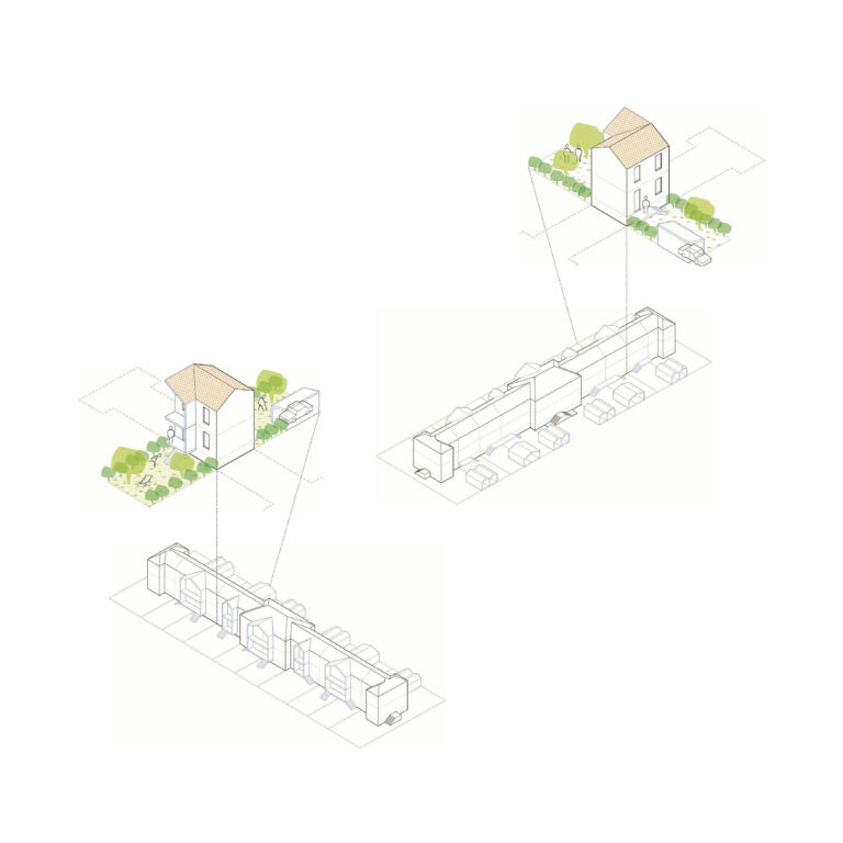 À l’issue d’un appel à projets lancé en 2023, notre projet, porté par le groupe immobilier Pichet, a été retenu par I’AP-HP pour une opération de recyclage urbain à la lisière de la forêt domaniale de Sénart. Le projet propose une réinterprétation du plan masse existant en conservant les grandes qualités urbaines de la composition initiale. Par une valorisation du patrimoine hospitalier, les différents programmes du futur quartier mixte prennent place dans les bâtiments existants réhabilités.