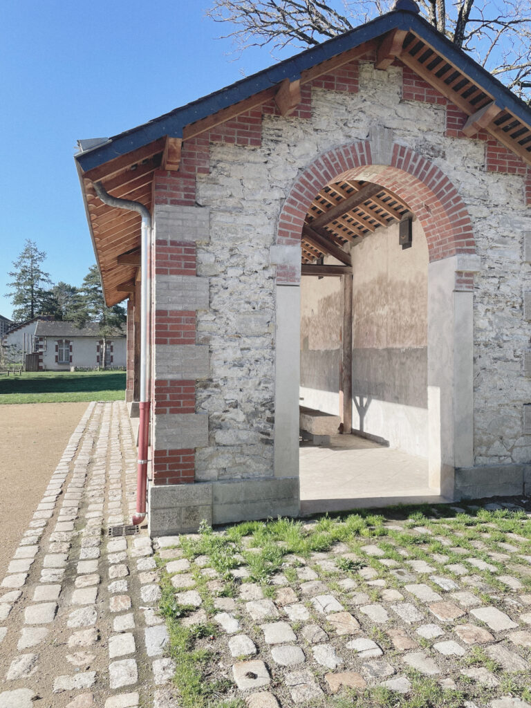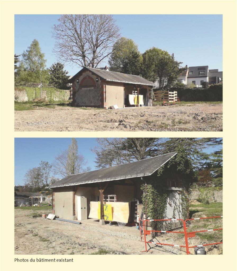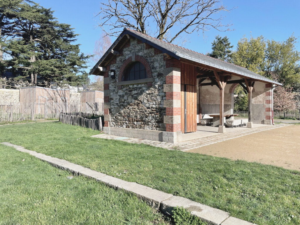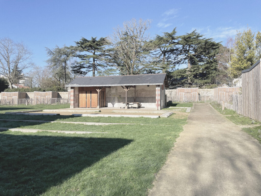 Pensé comme un lieu de vie et de convivialité, le bâtiment devient un point de rassemblement pour les jardiniers du site. Il accueille désormais un espace sanitaire et un local de rangement, intégrés dans une extension discrète en ossature bois. Le choix de matériaux bruts et durables, notamment un bardage en bois qui se patinera naturellement, inscrit le projet dans le paysage des jardins et prolonge le vocabulaire existant.