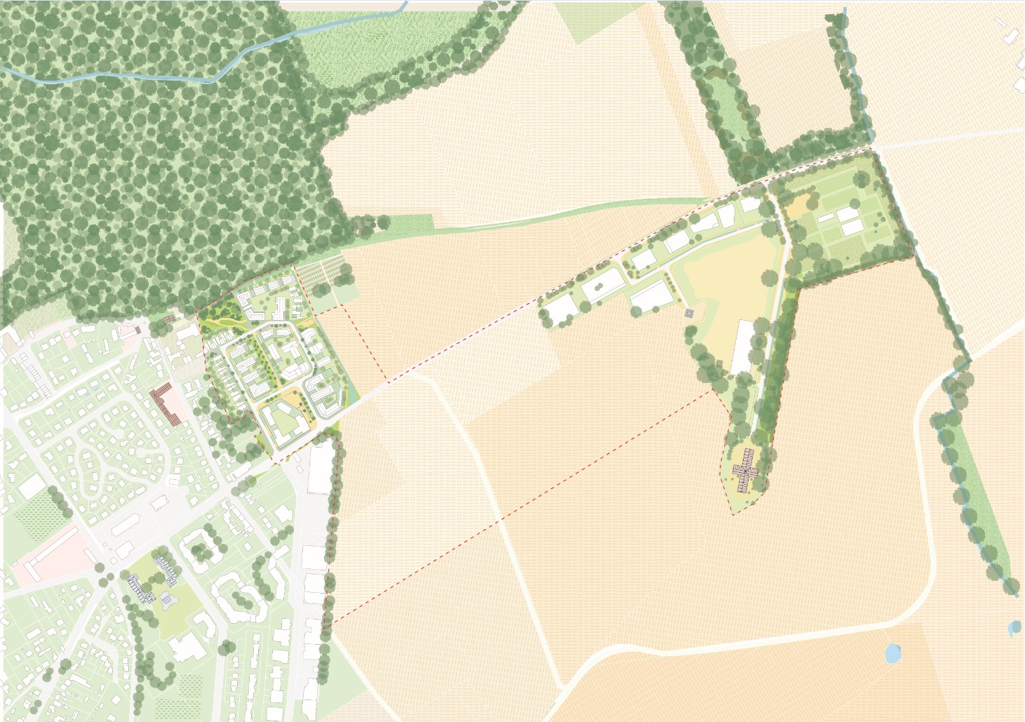 une extension du centre-bourg de 5 ha accueillant environ 400 logements (collectifs et individuels), des commerces et une résidence intergénérationnelle ;